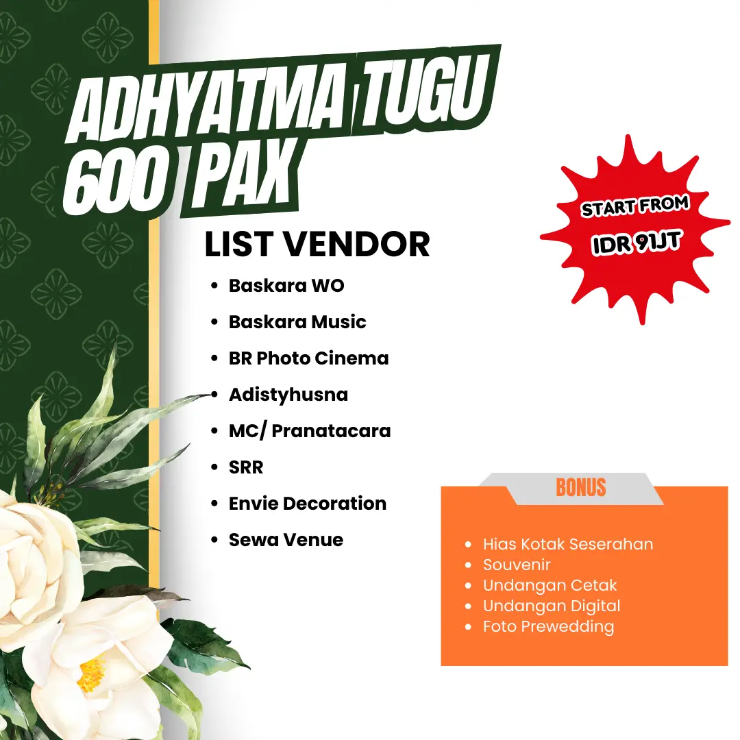 Adhiyatma Tugu Rejo memiliki segala fasilitas penunjang untuk pernikahan Anda. Dengan venue yang menarik akan membuat moment spesial pernikahan akan menjadi lebih berkesan.