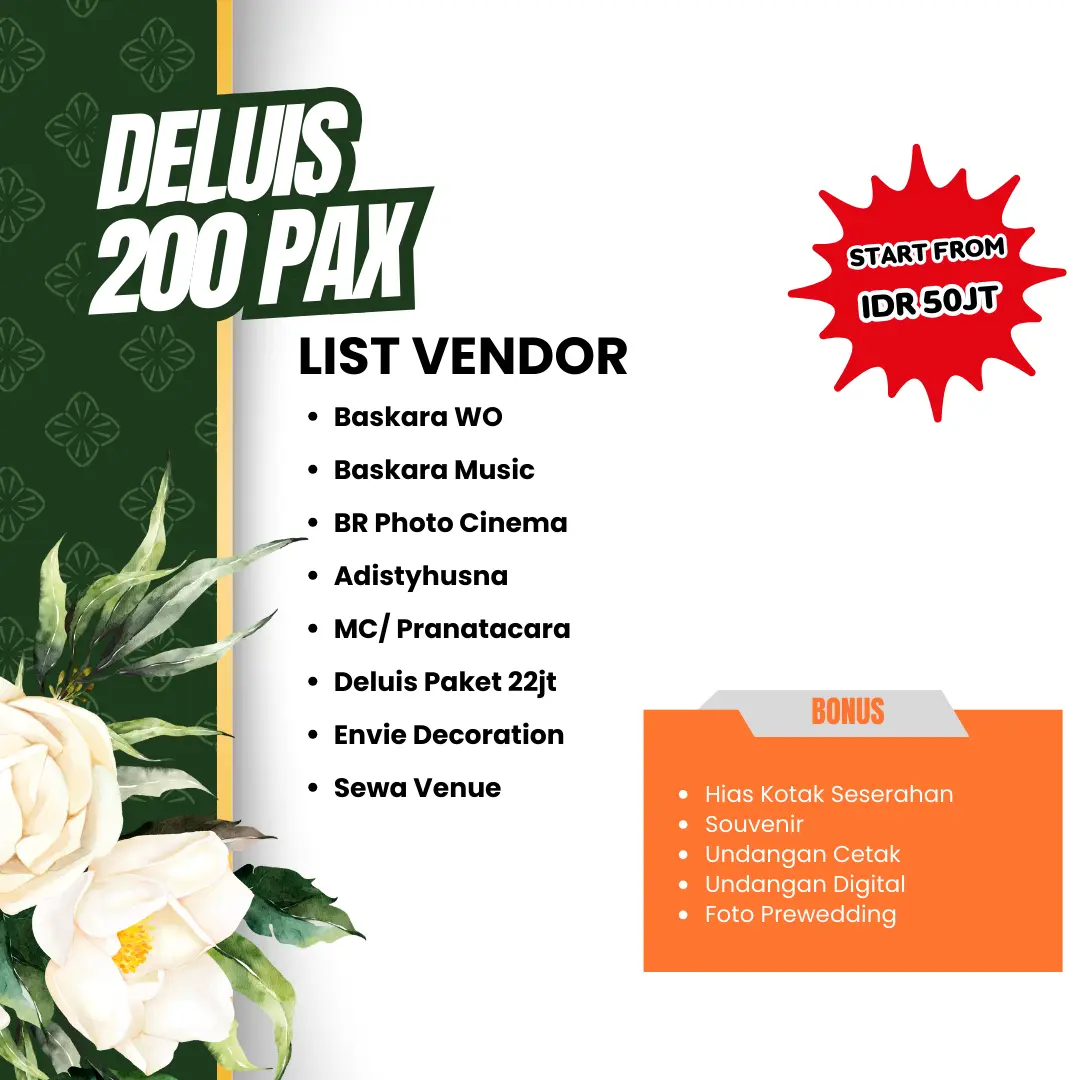 De Luis memiliki segala fasilitas penunjang untuk pernikahan Anda. Dengan venue yang menarik akan membuat moment spesial pernikahan akan menjadi lebih berkesan.