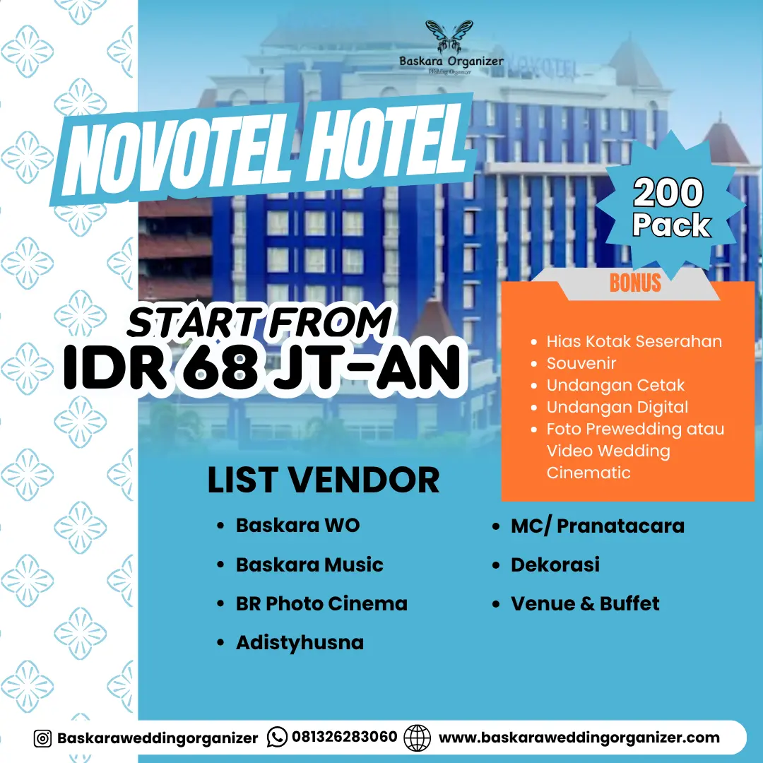 Jika kamu menginginkan pernikahan pada hotel Novotel Semarang kamu dapat menghubungi Baskara WO. Sebab, Baskara WO adalah Profesional Wedding Organizer yang memiliki wedding package di Novotel Hotel Semarang dengan harga yang terjangkau.